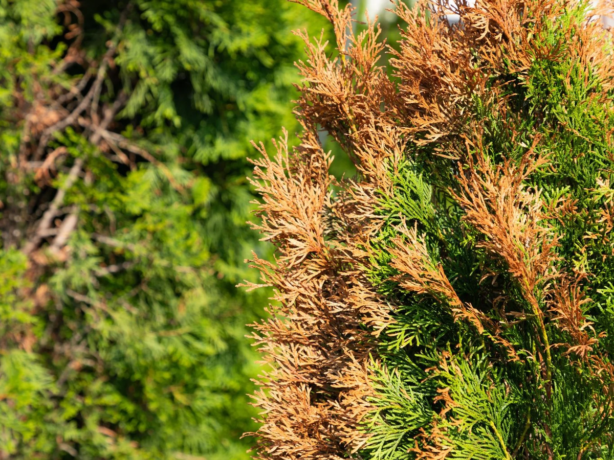 Причины зимней потери декоративности туй