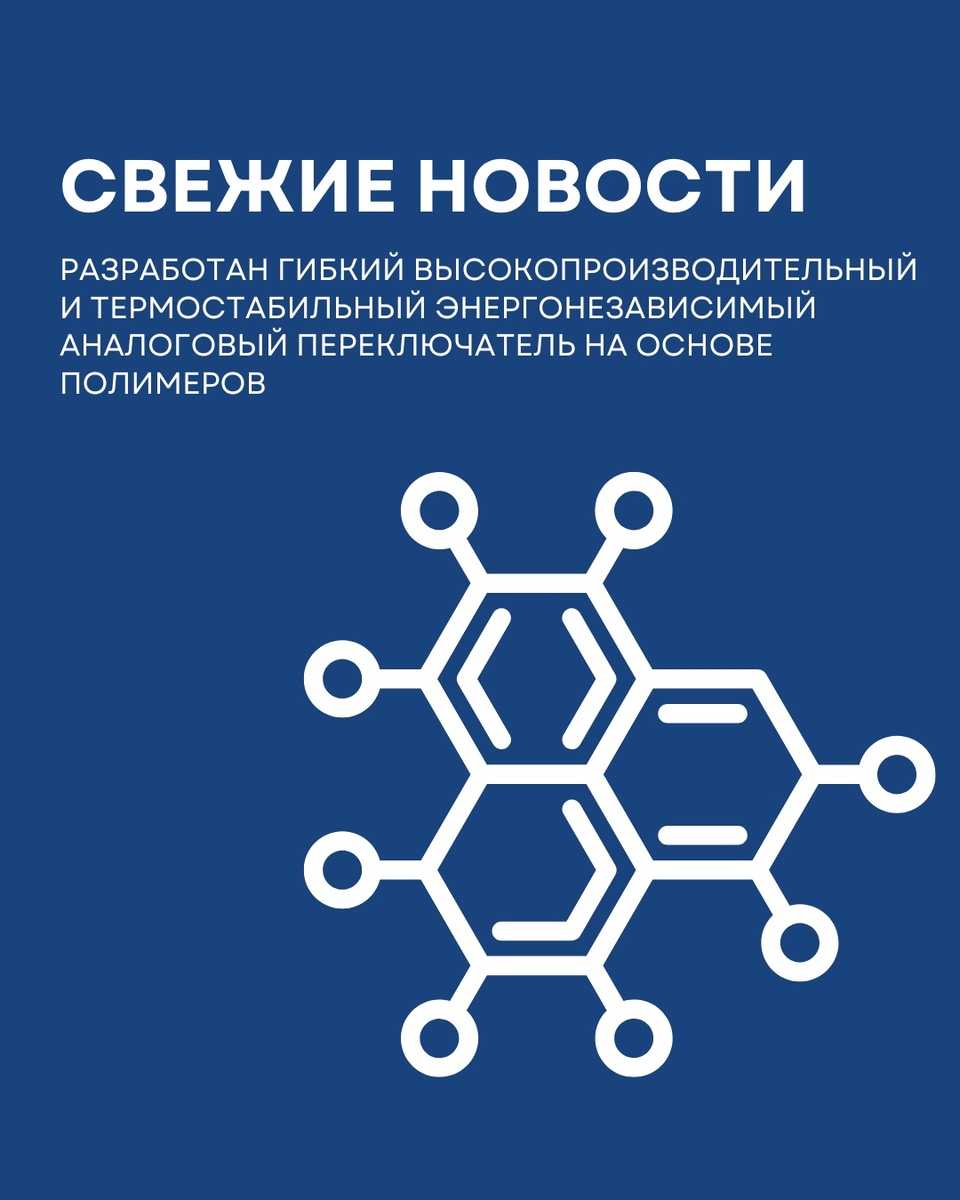 Разработан гибкий высокопроизводительный и термостабильный энергонезависимый аналоговый переключатель на основе полимеров