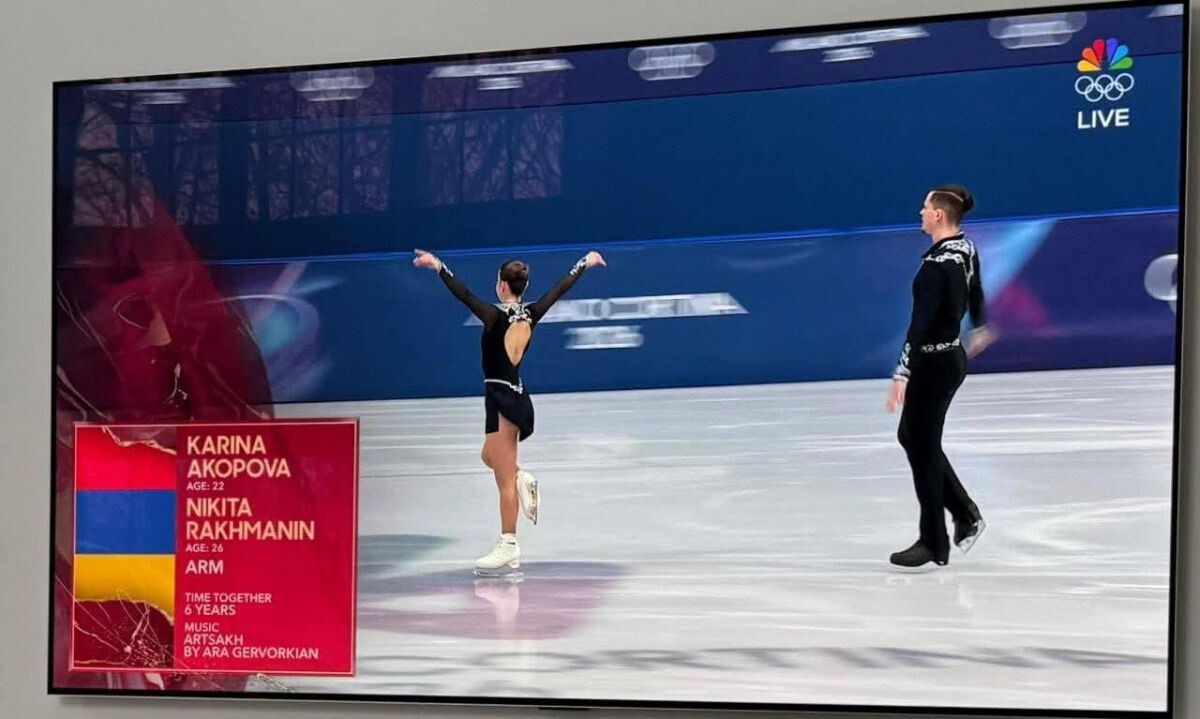 "Комментаторы Общественного телевидения Армении побоялись упомянуть слово «Арцах» во время исполнения армянскими фигуристами короткой программы на Олимпийских играх в Милане. Карина Акопова и Никита Рахманин отлично откатали под мелодию «Арцах» композитора Ара Геворкяна, но комментаторы упомянули лишь то, что автор музыки — Ара Геворкян, — пишет Verelq.am.