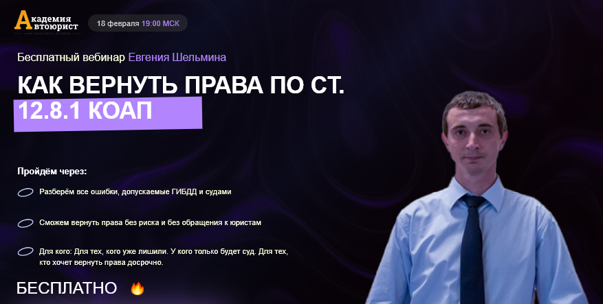 Миф о том, что вернуть права за пьяну невозможно давно развеян. Как и то, что инспекторы в сговоре с судьями и всех лишают :). Тысячи выигранных дел опровергают эту глупость и приводят к одному решению: глупые ходят пешком кто умнее - ездит на авто Как же так получается? Не нужно быть юристом чтобы разбираться в этом вопросе, но и не нужно верить всему что написано на заборе в интернет. Нужно обратиться к компетентным специалистам и получить ответы на основные вопросы. Я провожу бесплатный вебинар. Глупо не пойти и не получить то, что многие юристы даже не знают!!! Разберу за час все ситуации. Все особенности. Расскажу все что нужно делать и чего делать нельзя. Записывайтесь по ссылке ЗДЕСЬ Но я знаю, что не все смогут быть в назначенное время. Могу организовать запись и бесплатно прислать если это нужно. Нужно? Напишите мне в МАХ +79099277286 и я или мои помощники скинем вам. Но и это не все! Недавно вышла моя книга-инструкция "Как вернуть права за управление в состоянии опьянени