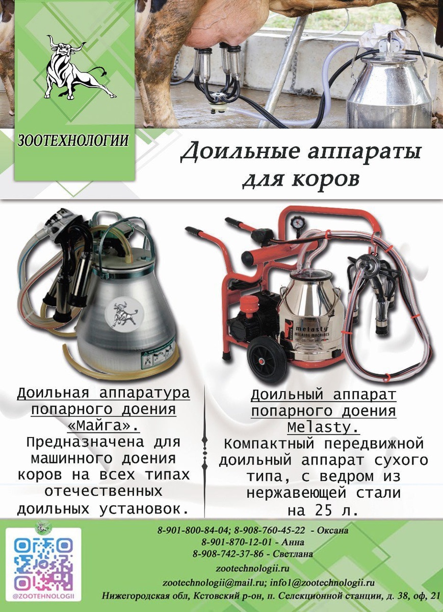 Добрый день 🐄 Представляем Вашему вниманию доильные аппараты в сборе для крупного рогатого скота, которые предназначены для облегчения и ускорения процесса доения. Они позволяют в короткий срок полностью выдоить вымя коровы, не причиняя ей болезненных ощущений, и снизить нагрузку на работников предприятия. 🍀 Также при использовании доильных установок повышается качество молока: снижается вероятность попадания в жидкость загрязнений и посторонних частиц, исключается контакт с воздухом и руками оператора. Оставить заявку можно у наших менеджеров: Оксана: 8-901-800-84-04; 8-908-760-45-22 Светлана : 8-908-742-37-86 Анна: 8-901-870-12-01 Юлия: 8-902-787-47-33 Смотрите нас на Rutube👍 #Доильные_аппараты_для_коров