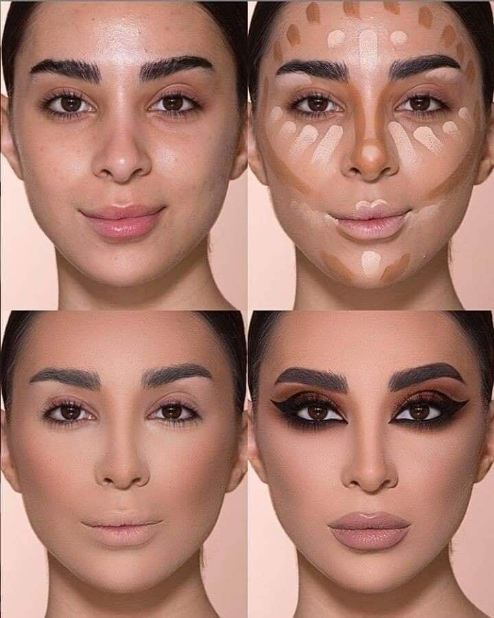 - Контуринг (по желанию): Контуринг – это техника затемнения и высветления определенных зон лица для создания иллюзии объема и коррекции формы. Для начала можно использовать бронзер или темный оттенок пудры, нанося его под скулы, по бокам носа и под линию подбородка.