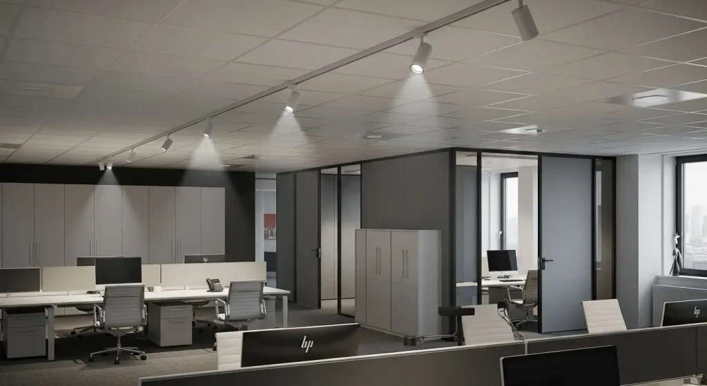 Перепланировка офиса без замены потолка: возможности трекового освещения