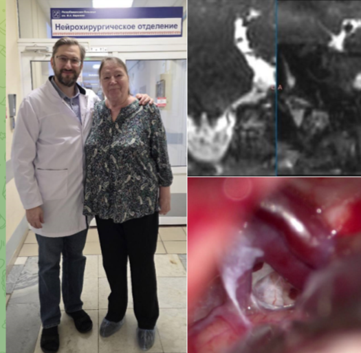 В начале февраля, жительница Читы Любовь Ш., у которой долгое время были боли в лице, преодолела расстояние в 10 тысяч километров до Петрозаводска, чтобы получить помощь врача Республиканской больницы Юрия Кивелёва. Проблема у неё была в атипичности болей. Около трети случаев невралгии тройничного нерва протекают без классических прострелов: боль может быть постоянная, не всегда вызвана триггерами, и распространяется на более широкие области лица и головы. Пациентка обращалась ко многим врачам, в том числе в федеральные клиники. Но никто не решался сделать операцию. И только специалист из Карелии помог ей. Об этом сообщил в своем телеграм-канале глава регионального Минздрава Михаил Охлопков. «Технически операция выглядит следующим образом. Делается небольшой разрез в заушной области на стороне поражения. Проводится миникраниотомия, или трепанация. Тканесберегающая, максимальными размерами до двух сантиметров. Осуществляется подход к структурам мостомозжечкового угла под микроскопом. Вр