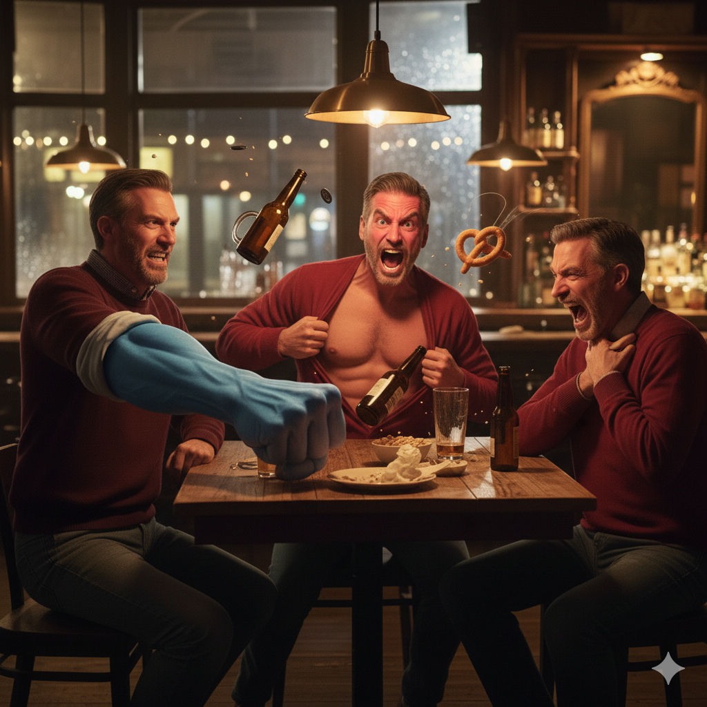 Есть в нашей жизни священный ритуал, который не отменял ни один дедлайн, начальник-самодур или экономический кризис. Пятница, вечер, бар на углу. Тот самый, где официант уже знает наш заказ, а бармен с пониманием кивает, когда мы просим покрепче, потому что неделя была длиною в жизнь. В этот раз мы собрались, как всегда: я, Саня и Колян. Три старых друга, чья дружба началась еще в школе с разделенной на троих сигареты за гаражами, а сейчас держится на привычке и редких, но честных посиделках. В воздухе витал запах жареных колбасок и предвкушения свободы. Мы чокнулись за то, чтобы оно всё наконец-то... ну, вы поняли.