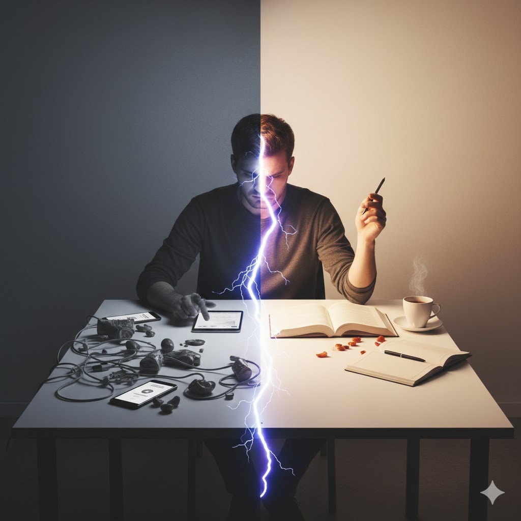 Ваш мозг имеет ограниченный лимит на принятие решений в день (decision fatigue). Каждое уведомление в Telegram, каждый просмотренный Reels — это микровзрыв, который истощает ваш когнитивный ресурс.