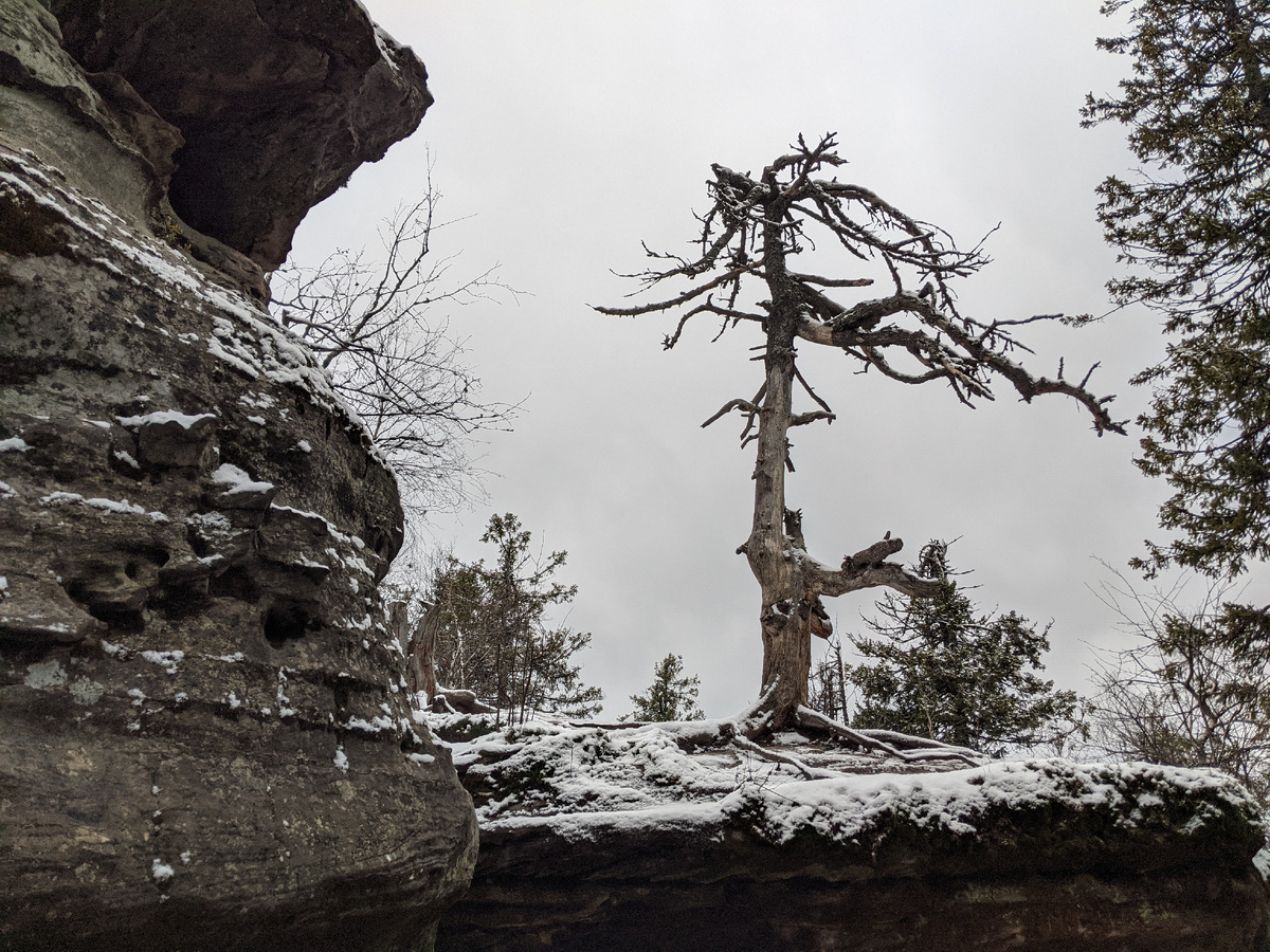 Поздняя осень, первый снег в уральской тайге. Белоснежные искристые шапки на соснах, тишина, морозец. Поднимаешься по деревянному настилу полчаса вверх — и вдруг лес расступается. Перед глазами огромные каменные глыбы с узкими проходами между ними, площади, «улицы». Как будто попал в древний заброшенный город. Только это не город. Это то, что создала природа за миллионы лет — и что облюбовали киношники для мистических сцен. Поздней осенью, когда снег только делал попытки укрыть землю, мы решили отправиться в Каменный город в Пермском крае. Накануне поездки собрали фототехнику, немного еды на перекус, взяли тёплую одежду и поздним вечером стали искать хотя бы один шиномонтаж в Перми, где можно поменять колёса. Прокатавшись безрезультатно почти до полуночи, мы решили, что займёмся этим вопросом с утра. На рассвете, переминаясь с ноги на ногу от утреннего морозца, самостоятельно перекинули колёса, и отправились в уральский лес, прихватив с собой ещё парочку друзей. Добраться своим ходом