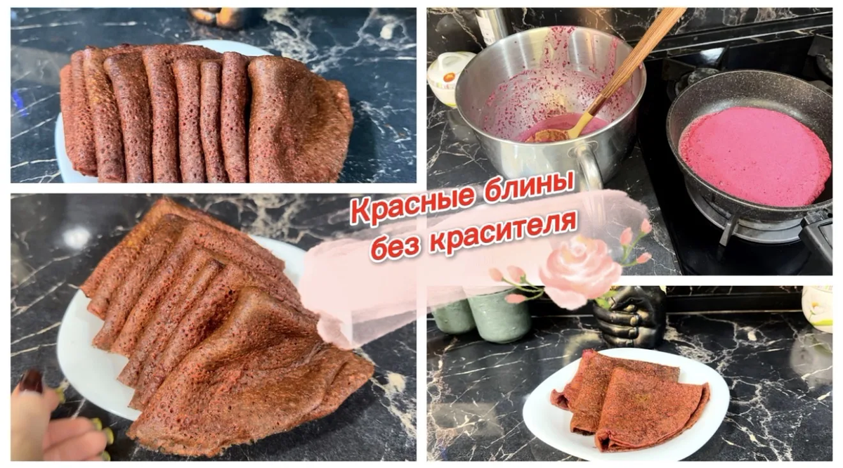 Всем привет! Сегодня приготовим вкусные блины со свеклой! Ингредиенты: - Свёкла — 1 средняя (примерно 200 г) - Молоко — 2 стакана (около 500 мл) - Яйцо куриное — 2 шт. - Мука пшеничная — около 1½ стаканов (примерно 200 г) - Растительное масло — 2 столовые ложки + немного для смазывания - Соль — щепотка - Сода пищевая — небольшая щепотка - Сахар — по желанию (можно обойтись без сахара, если предпочитаете несладкий вариант) Процесс приготовления: Шаг 1: Подготовка свеклы Свёклу предварительно отварите или запеките в духовке. Можно также воспользоваться микроволновой печью. Затем остудите её и натрите на мелкой терке или измельчите в блендере до пюреобразного состояния. Шаг 2: Смешивание ингредиентов 1. В отдельной миске взбейте яйца с солью до однородности. 2. Добавьте половину подготовленного молочка и снова хорошо перемешайте. 3. Постепенно введите в смесь свекольное пюре, продолжая мешать венчиком. 4. Добавьте оставшуюся половину теплого молока, всыпьте просеянную муку и аккуратно