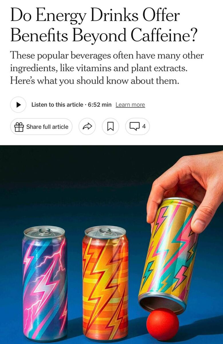 🔴 Помимо кофеина, который и даёт бодрящий эффект, в составе часто есть витамины группы B, аминокислоты и растительные экстракты. 🔴 Витамины поддерживают нервную систему, кожу и обмен веществ, гуарана помогает с концентрацией и выносливостью, а таурин участвует в работе сердца, мышц и ЦНС. 🔴 Главный нюанс энергетиков — конечно, сахар. В классических версиях его действительно много, поэтому логичнее выбирать варианты без сахара. По словам врачей, одна банка в день для здорового взрослого человека обычно укладывается в допустимую норму кофеина (примерно 100–300 мг), но смешивать энергетики с кофе уже перебор. Начинаем ПП с сегодняшнего дня 🤣 CtrlAltDelights- подписаться