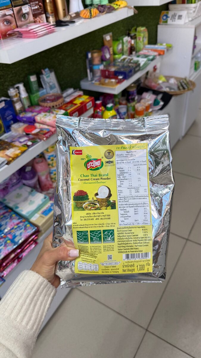 ДОМА. Девочки, если вы любите тайскую кухню или просто хотите готовить вкусно и без заморочек — вот ваша находка 👇 Кокосовые сливки в порошке Chao Thai Brand — это must-have на кухне. Почему я сама их беру и вам советую: ✅ Настоящий кокосовый вкус Не водянистый, не химозный. Получается густо, сливочно и очень ароматно. ✅ Хранится долго Не портится, не прокисает, всегда под рукой. ✅ Разводится за 10 секунд Просто добавила воду — и готово. ✅ Универсальный продукт Подходит для: • Том Ям • Карри • Супы • Соусы • Десерты • Коктейли • Кофе и смузи Один пакет = куча блюд 😍 💥 Особенно круто, если: – устала от обычной еды – хочешь вкус «как в Таиланде» – любишь готовить быстро – следишь за качеством продуктов Это не заменитель, это реальная альтернатива свежему кокосу — только удобнее. Формат большой, хватит надолго. Выгодно, вкусно и без переплат за бренды. 60 гр 185₽ 1 кг 1980₽ 📍Есть в наличии в красотай.рф Пиши @krasothai_irk — отправим по Иркутску или в любой город ✈️ _____