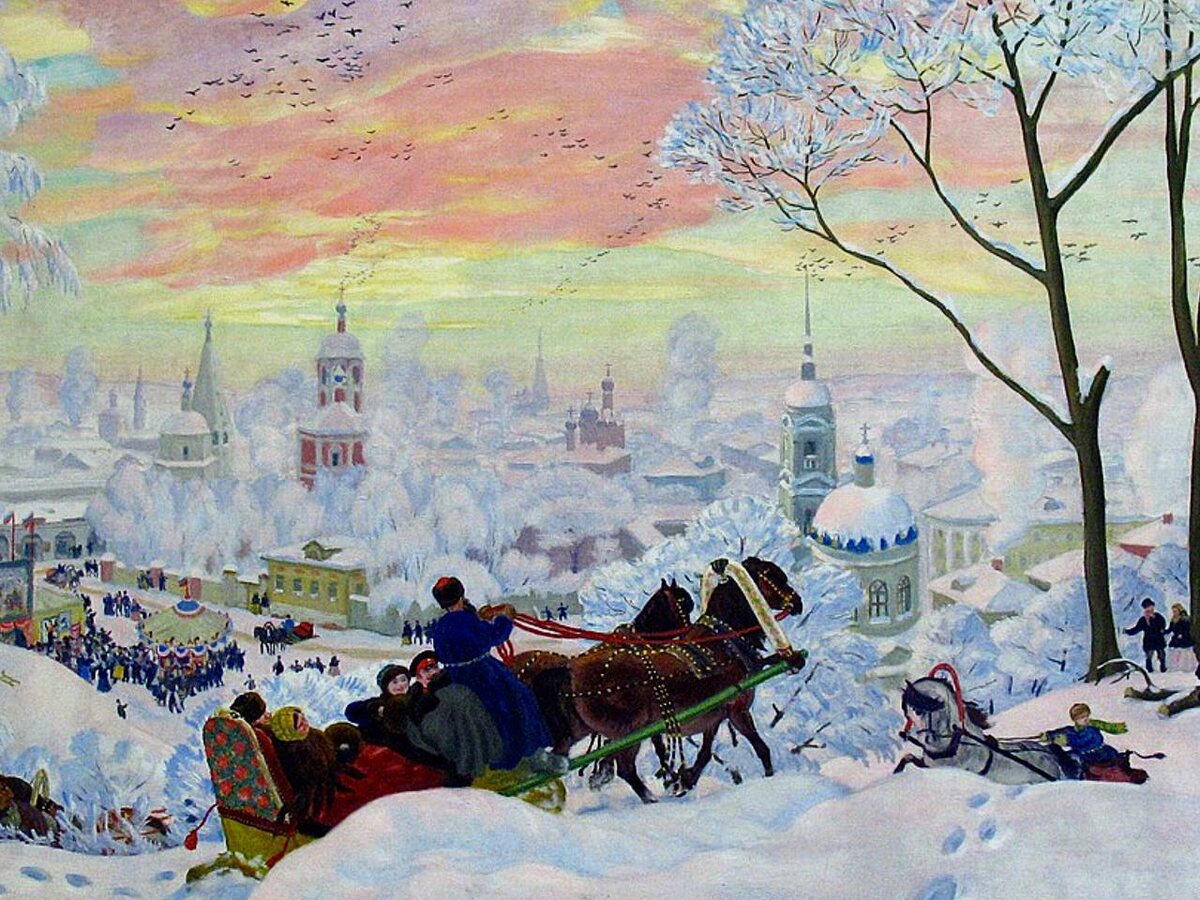 … История одной картины В 1916 году в Петрограде Борис Кустодиев пишет свою «Масленицу». Полотно создаётся по памяти — по впечатлениям детства в купеческой Астрахани, по шуму ярмарок, по катаниям с гор, по зимнему солнцу на румяных лицах. Это личная тема, к которой Кустодиев возвращается снова и снова в 1916, 1919, 1920 годах. Картина участвует в выставках ещё при жизни художника. Позже одна из самых известных версий поступает в собрание Русского музея, где хранится и сегодня. И, пожалуй, самое сильное в этой истории — масштаб. Кустодиев писал большое полотно, находясь в инвалидном кресле. Холст приходилось закреплять, поворачивать, выстраивать композицию. Человек, лишённый движения, создаёт картину, где всё движется.