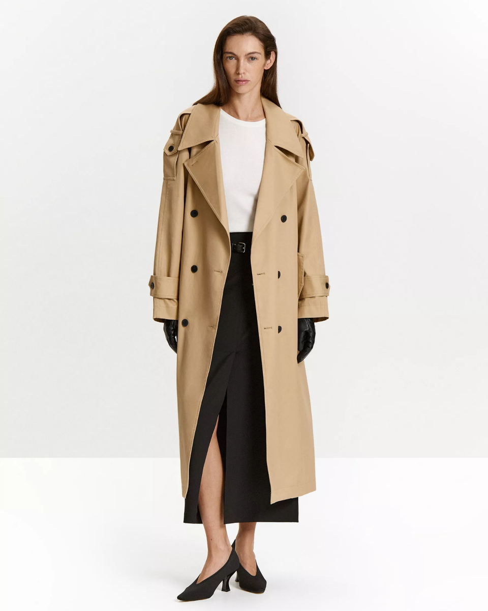 Весна — время, когда хочется лёгкости, комфорта и элегантности в каждом образе. Мы собрали три модели верхней одежды из нашей новой коллекции, которые легко интегрировать в повседневные комбинации Тренч прямого кроя с поясом — база, которая из сезона в сезон остаётся актуальной. Натуральный хлопок с водоотталкивающей пропиткой держит форму, а пояс подчёркивает линию талии, создавая аккуратный и утончённый силуэт. Такой тренч прекрасно сочетается с юбками, брюками и платьями. Чёрное пальто — любимая классика. Поднятый лацкан и акцентные плечи создают актуальную форму, а длина макси визуально вытягивает силуэт. Пальто одинаково эффектно смотрится с денимом и с вечерними нарядами. Элегантное пальто-кимоно — современный акцент весеннего гардероба. Свободный крой и мягкие линии создают тот самый женственный силуэт, а лёгкость ткани делает его идеальным выбором для комбинаций с многослойными аутфитами.