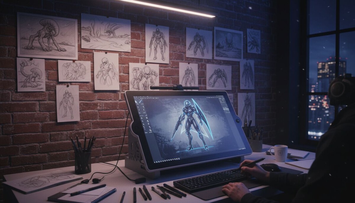 Создание концепт-арта всегда было этапом поиска. Это не финальная иллюстрация, а визуальное исследование идеи: персонажа, окружения, предмета или целого мира. Раньше концепт-арт требовал десятков быстрых скетчей, референсов и долгих итераций. Сегодня нейросети стали инструментом, который ускоряет этот процесс — но не заменяет художника. Важно понимать: ИИ — это не «кнопка, которая рисует». Это инструмент генерации вариантов, с которым нужно работать осознанно. Если упростить, нейросеть позволяет: — быстро генерировать вариации персонажей