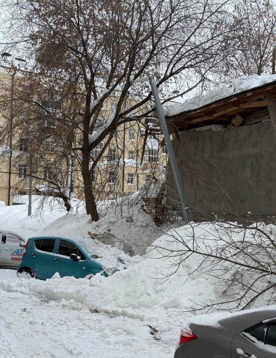 Рухнувшая ранним утром 16 февраля под тяжестью снега крыша нежилого заброшенного здания в Старо-Татарской слободе в центре Казани повредила
