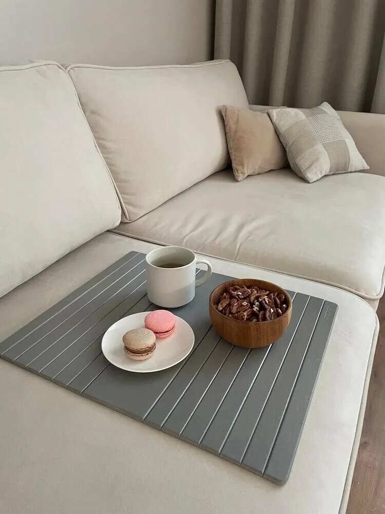 Они универсальны: их можно использовать для подачи блюд, сервировки стола или для фруктов.Дорогие читатели, подготовила новый обзор красивых и полезных находок. Сегодня собрала в статье товары в красивом благородном сером цвете. Если вам интересно, оставайтесь и давайте посмотрим, что я нашла. Не является рекламой. И первое, что мне сегодня приглянулось, вот такая гибкая удобная подставка. Этот компактный столик, выполненный из дерева и устанавливаемый на подлокотник, идеально подходит для создания дополнительного удобного пространства на диване или кресле. Подставка прекрасно подойдет для того, чтобы поставить на нее кружку с утренним кофе или бокал с вечерним вином. Также его можно использовать в качестве подставки для ноутбука, обеспечивая удобство при работе из дома. Она легко адаптируется под любой подлокотник: полукруглый или квадратный. А еще гибкая подставка не только удобна в использовании, но и она защитит подлокотник от загрязнений и потертостей. Цена 1 553 рубля. Артикул 2
