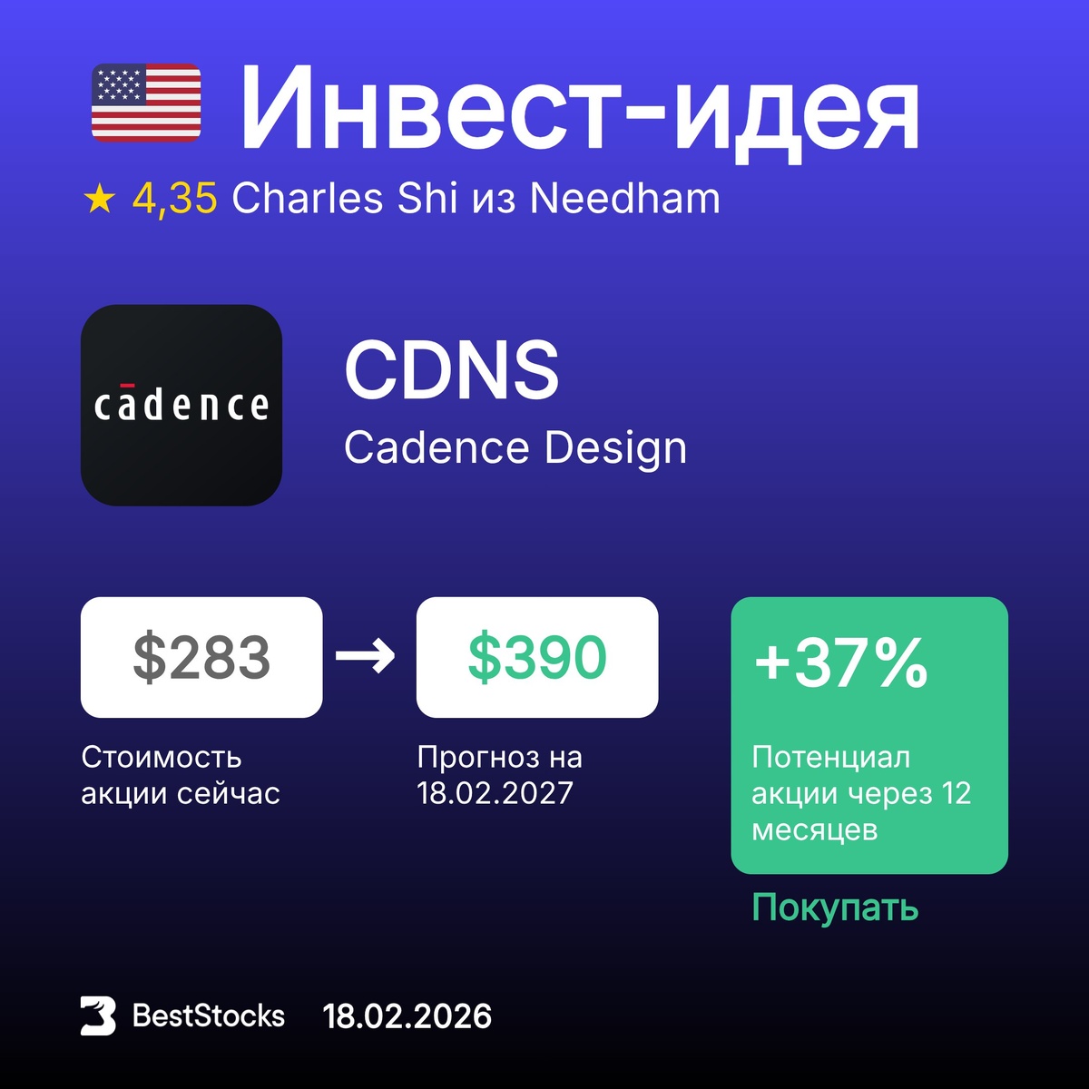 Π’ΠΈΠΊΠ΅Ρ: CDNS ΠΡΠΎΠ³Π½ΠΎΠ·Π½Π°Ρ ΡΠ΅Π½Π°: $390 (+37%) Π Π΅ΠΊΠΎΠΌΠ΅Π½Π΄Π°ΡΠΈΡ: ΠΠΎΠΊΡΠΏΠ°ΡΡ InvestRank Π°ΠΊΡΠΈΠΈ: 6 ΠΈΠ· 10 ΠΡΠΎΠ³Π½ΠΎΠ· ΡΠ΄Π΅Π»Π°Π½: 18.02.2026 ΠΡΠΎΠ³Π½ΠΎΠ· Π΄ΠΎ: 18.02.2027 ΠΠ½Π²Π΅ΡΡ-ΠΊΠΎΠΌΠΏΠ°Π½ΠΈΡ: Needham ΠΠ½Π°Π»ΠΈΡΠΈΠΊ: Charles Shi ΠΡΡ ΡΠ΅ΠΊΠΎΠΌΠ΅Π½Π΄Π°ΡΠΈΠΈ Π½Π° ΡΠ΅Π³ΠΎΠ΄Π½Ρ β β’β’β’β’β’ β‘οΈ ΠΠΎΠ²ΡΠΉ ΡΡΠ½ΠΊΡΠΈΠΎΠ½Π°Π» Π½Π° ΡΠ°ΠΉΡΠ΅ β π·πΊ ΠΠ°ΠΊΠΈΠ΅ ΡΡΡΡΠΊΠΈΠ΅ Π°ΠΊΡΠΈΠΈ Π² ΡΡΠ΅Π½Π΄Π΅. Π£Π·Π½Π°ΠΉΡΠ΅, ΠΊΠ°ΠΊΠΈΠ΅ Π±ΡΠΌΠ°Π³ΠΈ ΠΈΠ· Π ΠΎΡΡΠΈΠΈ ΠΏΠΎΠ»ΡΡΠΈΠ»ΠΈ Π±ΠΎΠ»ΡΡΠ΅ Π²ΡΠ΅Π³ΠΎ ΡΠ΅ΠΊΠΎΠΌΠ΅Π½Π΄Π°ΡΠΈΠΉ Π·Π° ΠΏΠΎΡΠ»Π΅Π΄Π½ΡΡ Π½Π΅Π΄Π΅Π»Ρ.