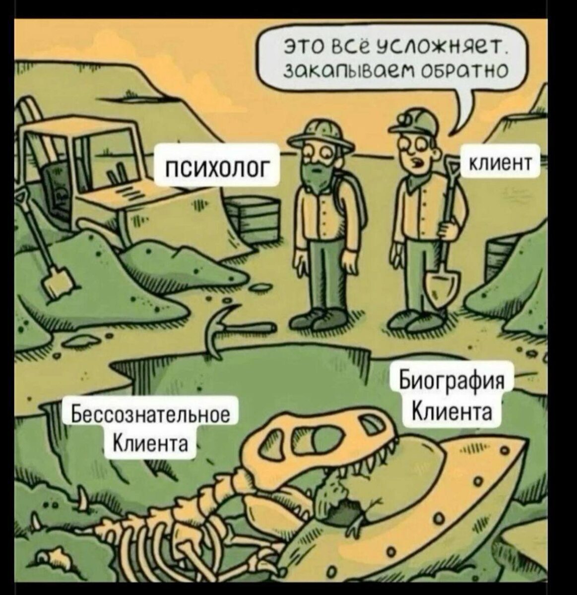 !» Всем привет! Увидела сегодня с утра этот мем и решила раскрыть этот «прикол» терапии)) Ведь вполне неплохая иллюстрация того, что происходит, когда идем в глубину на сессиях. Итак, когда ты приходишь к психологу на консультацию, чаще всего ждёшь - «ну сейчас я расскажу пару ситуаций, мы быстренько их решим и всё станет хорошо». И ведь правда, для начала мы работаем с актуальным стрессом, учимся различать и экологично проживать свои эмоции. Но если ты хочешь устойчивых изменений, рано или поздно «лопата» натыкается на что-то, что было заложено в тебе и давно закопано. Вот и получается: ты рассчитывал найти причину нестабильной самооценки в самой ситуации, а откопал травмы и вытесненные чувства, на первый взгляд не совсем связанные с твоим запросом. 🎅Почему так получается? Твои текущие сложности — это, как говорится, только верхушка айсберга. Поведенческие паттерны (например: «я не умею говорить нет», «я всегда так выгораю на работе, что просто вынужден уволиться, нигде не задержи