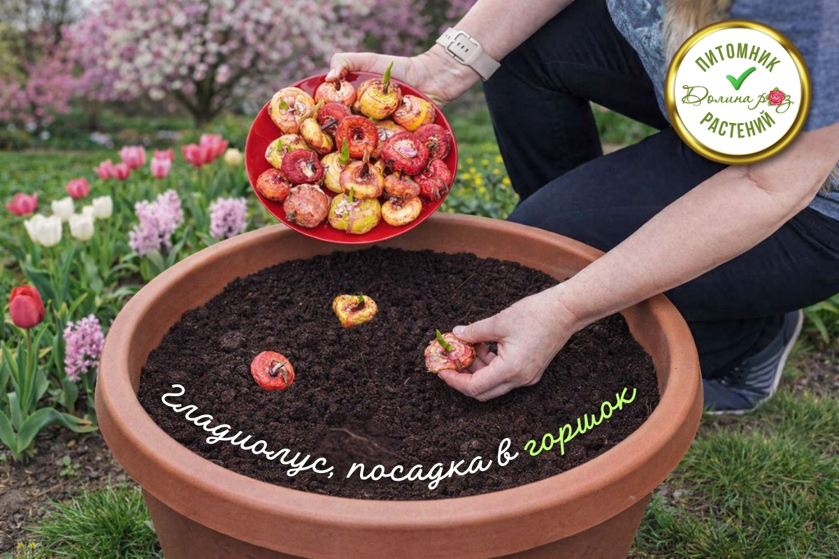 Гладиолусы прекрасно смотрятся и в горшках. Так же это отличное решение, когда почва в саду тяжелая и влажная и вырастить гладиолусы в грунте невозможно. На дно необходимо уложить дренажный слой из гальки, битых кирпичей или керамзита. Он будут пропускать воду, но не позволят грунту вымываться. Поверх этого слоя засыпают почву. Она должна быть питательной, в меру рыхлой и влагоёмкой. Лучшим вариантом для контейнерной посадки будут низкорослые гладиолусы. Для высоких растений потребуется опора. Земля в горшках пересыхает быстрее, чем в открытом грунте. В жаркие летние дни поливать гладиолусы нужно чаще. Чтобы повысить влагостойкость, верхний слой можно замульчировать, используя торф или перегной. Но не забывайте! Не стоит переувлажнять эти растения. Гладиолусы в кашпо следует подкармливать чаще. Лучше всего для этих целей подойдут комплексные удобрения (Плантафол, Акварин и т д). Для установки горшков со шпажниками необходимо тщательно выбирать место. Растение любит тепло и свет, ему пр