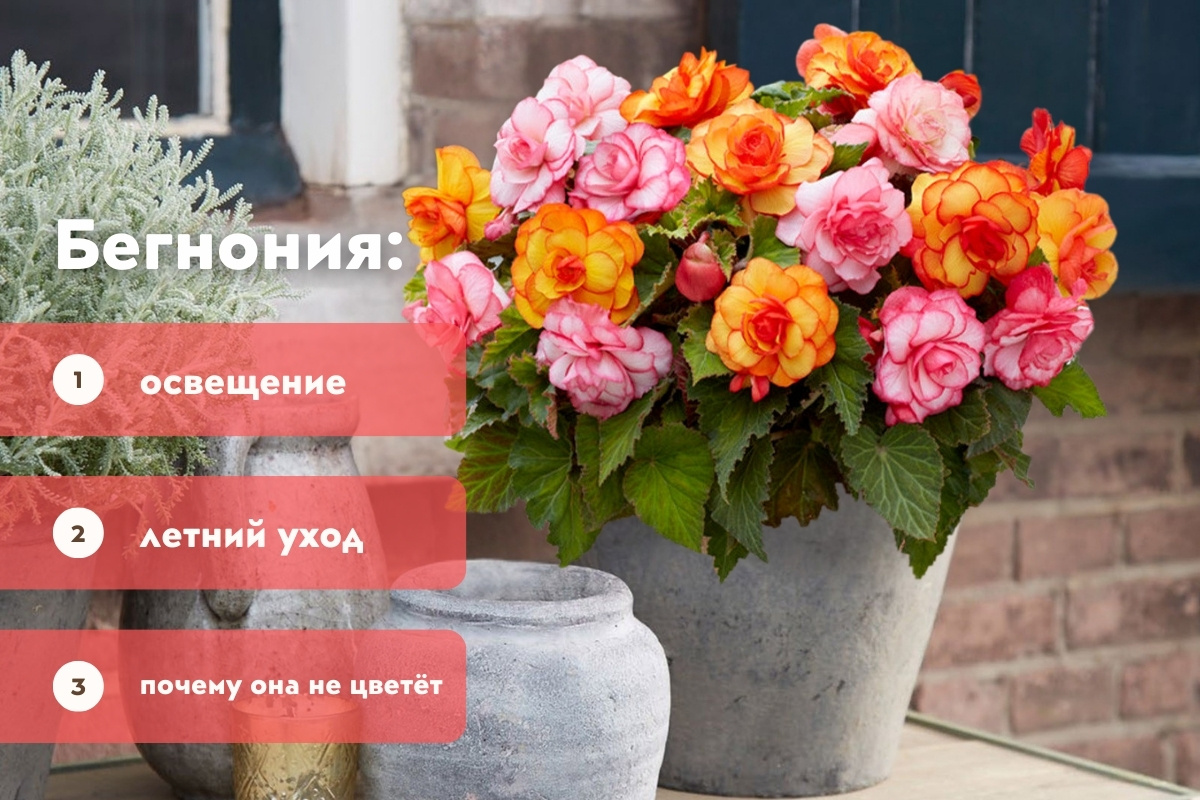 Бегонию любят за неприхотливость, яркие цветы и пышную листву. В этом посте разберём, чем она привлекательна, какое освещение ей нужно, куда поставить горшок, как ухаживать летом и почему она может не цвести. Чем привлекательна бегония Бегония сочетает красоту цветов (от белого до ярко-красного) и декоративную листву — асимметричную, блестящую, с узорами или волнистыми краями. Она обильно цветёт с весны до осени, компактна для подоконников, балконов и клумб, устойчива к вредителям при правильном уходе. Освещение для бегонии: чтобы не ошибиться с местом Бегония любит яркий рассеянный свет, но не прямое солнце. Идеал — восточное или западное окно с лёгкой занавеской. Летний полдень (особенно на южных окнах) обжигает листья, вызывая ожоги. Северное окно подходит для теневыносливых видов, но цветение будет слабее. Проверить просто: если листья бледнеют и вытягиваются — света мало, если сохнут края — слишком много. 8–12 часов рассеянного света в день норма для большинства видов. Уход за бег