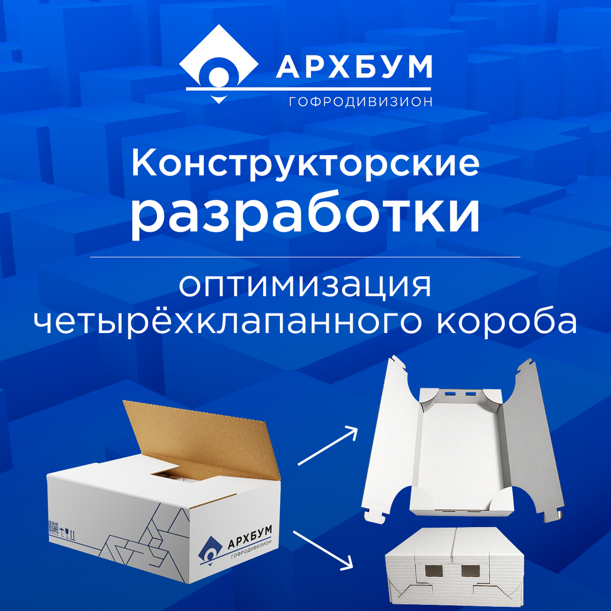 Рассмотрим пример оптимизации самого распространённого типа упаковки — стандартного четырёхклапанного короба: За счёт внесения изменений в конструкцию удалось: - Уменьшить площадь материала на 17% - Увеличить прочность по параметру вертикального сжатия на 5% - Повысить экологичность - Увеличить допустимую нагрузку на 5-10%