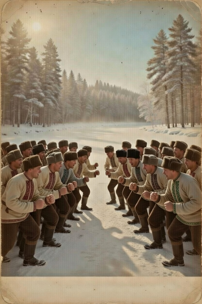В четверг у нас Разгуляй — четвёртый день Масленицы, когда всё веселье выходит на максимум . И главная забава для мужиков — кулачные бои. Казалось бы: ну подрались и подрались, пар выпустили. А нет. Наши предки вкладывали в это куда более глубокий смысл. Когда я разбирался с этой темой, нашёл такие детали, что теперь на драки смотрю иначе. Рассказываю, как, где и зачем бились, и почему проигравших потом утешали всей деревней. В Царицыне, например, главные бои проходили на льду реки Царицы . Это не случайно. Лёд — символ зимы, которую надо «разбить». И когда мужики бились на льду, они как бы помогали весне пробить зимний панцирь. Чем больше драк — тем быстрее река вскроется. Место боя было ещё и границей между районами. В Царицыне бились «центральные» против «зацарицынских». Мясники с базара шли на грузчиков порта, и казаки в стороне не стояли . Бои никогда не были простым мордобоем. Существовал неписаный кодекс: Начинали пацаны — разогревались. Потом вступали мужики покрепче. И только
