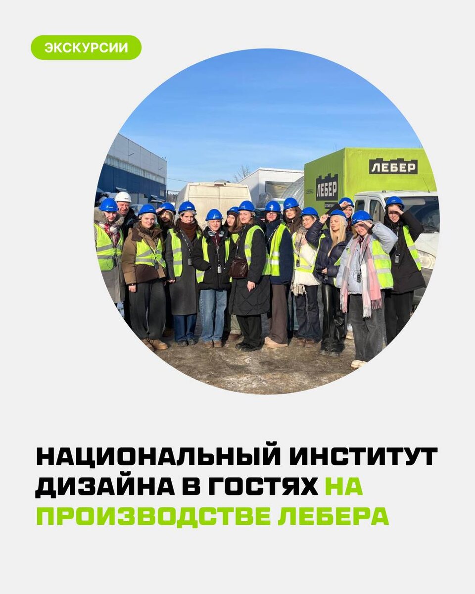 Визит получился практическим: у группы в работе семестровый проект по детским площадкам, так что вопросов к нашим инженерам было много. С представителями Национального института дизайна мы познакомились на Международном конкурсе студенческих работ АРХИ СТАРТ 2025, где команда Лебера выступала в роли экспертов. Рады были поделиться опытом и показать работу инновационного центра «Лебер» изнутри. Будем ждать студентов снова, на этот раз — уже в роли коллег. Хотите попасть к нам на производство? Оставьте заявку на экскурсию.