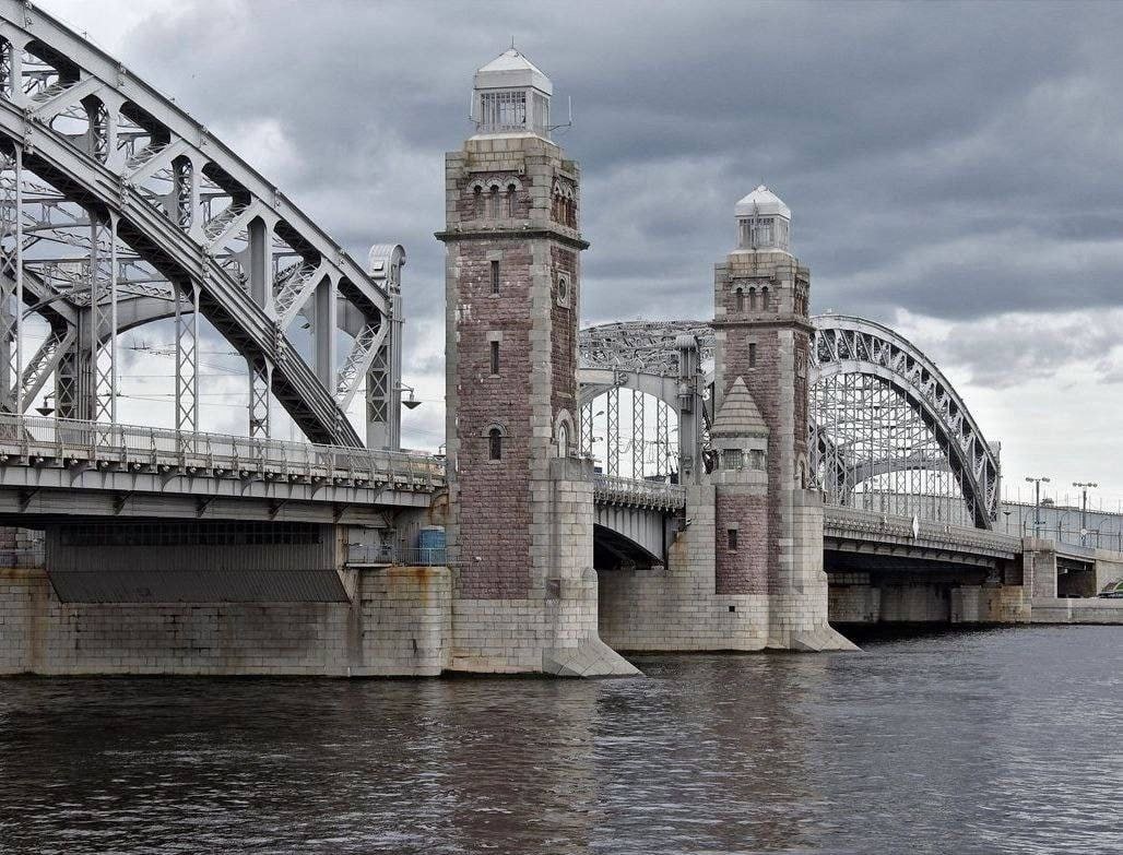 Большеохтинский мост, известный также как мост Петра Великого, построен по проекту Григория Кривошенина и Владимира Апышкова. Его открыли 26 октября 1911 года. Длина сооружения — 334 метра, а вес металлоконструкций составляет 8920 тонн. ⬇️ Внутри башен расположен пульт управления разводкой. Во время подъёма пролётов процесс контролируют четыре человека — по двое в каждой башне. Из пультовой открывается впечатляющий вид на соседнюю башню и пролёты. Сам развод занимает всего три минуты. А если подняться выше по винтовой лестнице, под самый купол, перед вами откроется панорама города с обзором на 360 градусов. 👀 👤 Питер в голове! 🔵 Теперь в МАХ