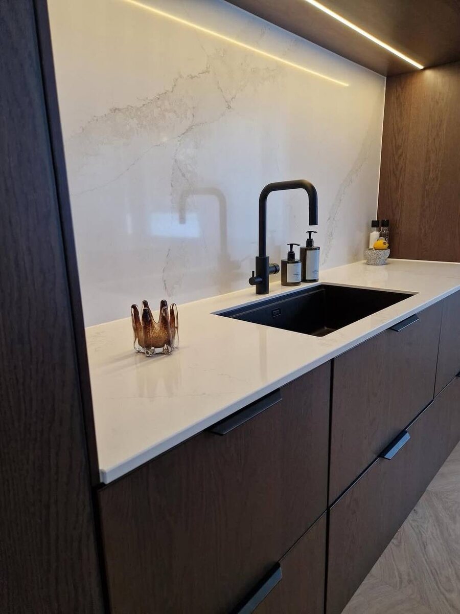 Впечатляющие ощущения от этой кухни благодаря невероятно стильному материалу Silestone Bronze Rivers, который уже стал нашим фаворитом