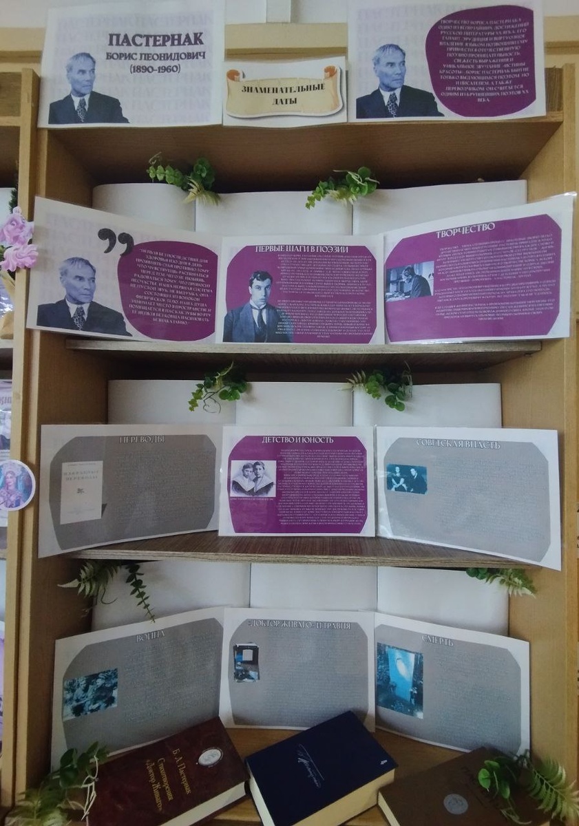 Колонка библиотекаря Борис Леонидович Пастернак — русский поэт и прозаик, одна из самых известных литературных личностей первых советских десятилетий, переводчик. Один из крупнейших русских поэтов XX века. Первые стихи опубликовал в 23 года. Интересные факты: 🧩 Борис Пастернак родился в творческой семье – отец его был художником. Борис в детстве тоже рисовал, но особенно увлекался музыкой – прекрасно играл на рояле, ему прочили карьеру блестящего музыканта. Но поэзия взяла верх над музыкой. 🧩 В детстве, отправившись в «ночное» (так назывался ночной выпас лошадей), Борис неудачно упал и сломал ногу. Одна нога так и осталась короче другой на всю жизнь – даже сапоги, которые хранятся в доме-музее в Переделкино, имеют разную толщину подошвы для коррекции разницы. 🧩 В 1930-е годы стихи Пастернака почти не издавались – и он занялся переводами, причём он переводил не с подстрочника, как многие, а с оригинала, поскольку знал английский, французский, немецкий и грузинский языки. До сих пор м