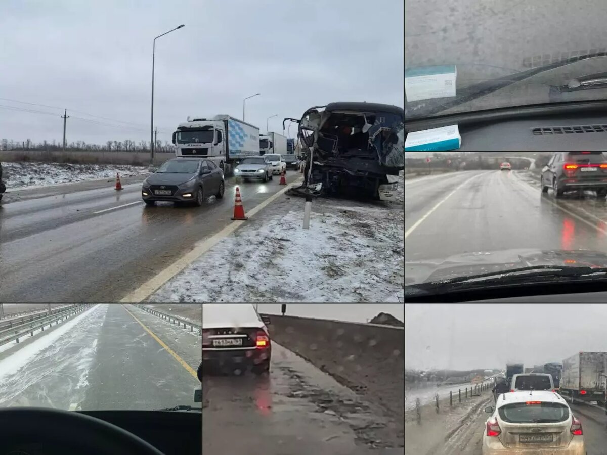 Трассу М-4 «Дон» в Ростовской области сковало ледяным дождем и метелью 18 февраля. Наиболее сложная обстановка сложилась на севере Ростовской области. Очевидцы сообщают о сильной метели. В районе Миллерово движение осложнили сразу два ДТП. Напомним, в одном из них столкнулись автобус и бензовоз — пострадали пять человек, один из них находится в реанимации. Из-за этого, по словам автомобилистов, движение в сторону Москвы затруднено. Снегопад отмечают на обходе Лосево и Павловска. В районе поселка Аютинского и города Шахты трасса М-4 остается преимущественно чистой, однако в самом поселке и городе асфальт превратился в каток. Серьезные трудности испытывают и водители, движущиеся по другим востребованным трассам. На Р-260 Волгоград — Каменск-Шахтинский — Луганск отрезок от Тацинской до Морозовска весь во льду. В районе Каменска-Шахтинского (за Лиховским постом) фиксируется пробка в сторону Ростова. По словам очевидцев, правая полоса дороги в заплатках и ямах, на которых случилось ДТП прим