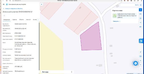 Георгиевское, ул. Нагорная Канал: Госземля Республика Адыгея Область: Респ Адыгея Район: м.р-н Гиагинский Населенный пункт: с.п. Сергиевское, с Георгиевское Локация: Смотреть на карте ВРИ: Жилая застройка Кадастровый номер: 01:01:0400016:121 Кадастровая стоимость: - Вид сделки: Аренда Площадь: 6000 м² Начальная цена: - руб. Дата завершения: 20.03.2026 Подробнее: ГИС ТОРГИ #госземля #земляотгосударства #земля #земельныйучасток #земельныеторги #торги #аукцион #арендаземли #аренда #республикаадыгея