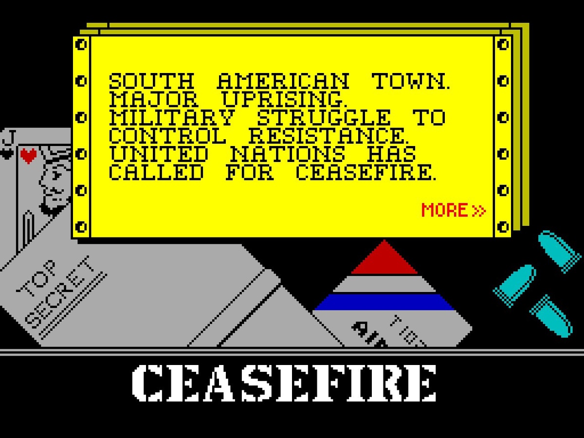 Приключенческая игра от студии Divide by Zero, изданная журналом Sinclair User. Это редкий для платформы образец политического триллера с глубоким сюжетом. Действие разворачивается в южноамериканском городе, охваченном гражданской войной. Игрок выступает в роли Дж. Т. Ладда — спецпосланника ООН, который должен добиться мирного урегулирования конфликта. Выполняя миссии в условиях хаоса, герой ведёт переговоры с лидерами враждующих фракций, и от его выбора реплик зависит развитие событий. Геймплей сочетает классический текстовый парсер с интерактивными диалогами. Управление гибкое: клавиши Q (прыжок), A (действие), O/P (влево-вправо), M (выстрел) плюс поддержка джойстиков Kempston и Sinclair. Несмотря на лимит памяти в 48 КБ, реализован разветвлённый сюжет. Уникальность игре придаёт тема... Читать далее 🕹 Играть онлайн Viva Games - Подписаться