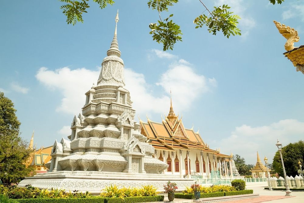 Буддийский храм с полом, выложенным серебряными плитами. Серебряная пагода расположена внутри комплекса Королевского дворца в Пномпене. Главная особенность пагоды – её уникальный пол, выложенный 5000 плитами из серебра. Каждая плита весит около 1 кг, и это придаёт храму необычайную атмосферу священности и богатства. Легенда гласит, что серебро было использовано, чтобы выразить уважение к Будде и подчеркнуть важность этого святого места. В центре пагоды находится знаменитая Золотая статуя Будды, которая является одной из самых значимых реликвий Камбоджи. Статуя сделана из золота и украшена бриллиантами. Это невероятно красивое произведение искусства привлекает поклонников и туристов со всего мира. Внутри пагоды хранятся различные буддийские реликвии, включая статуи, древние манускрипты и произведения искусства. Множество этих артефактов привезены с разных уголков Камбоджи и других стран, что подчеркивает разнообразие буддийской культуры. Серебряная пагода представляет собой прекрас