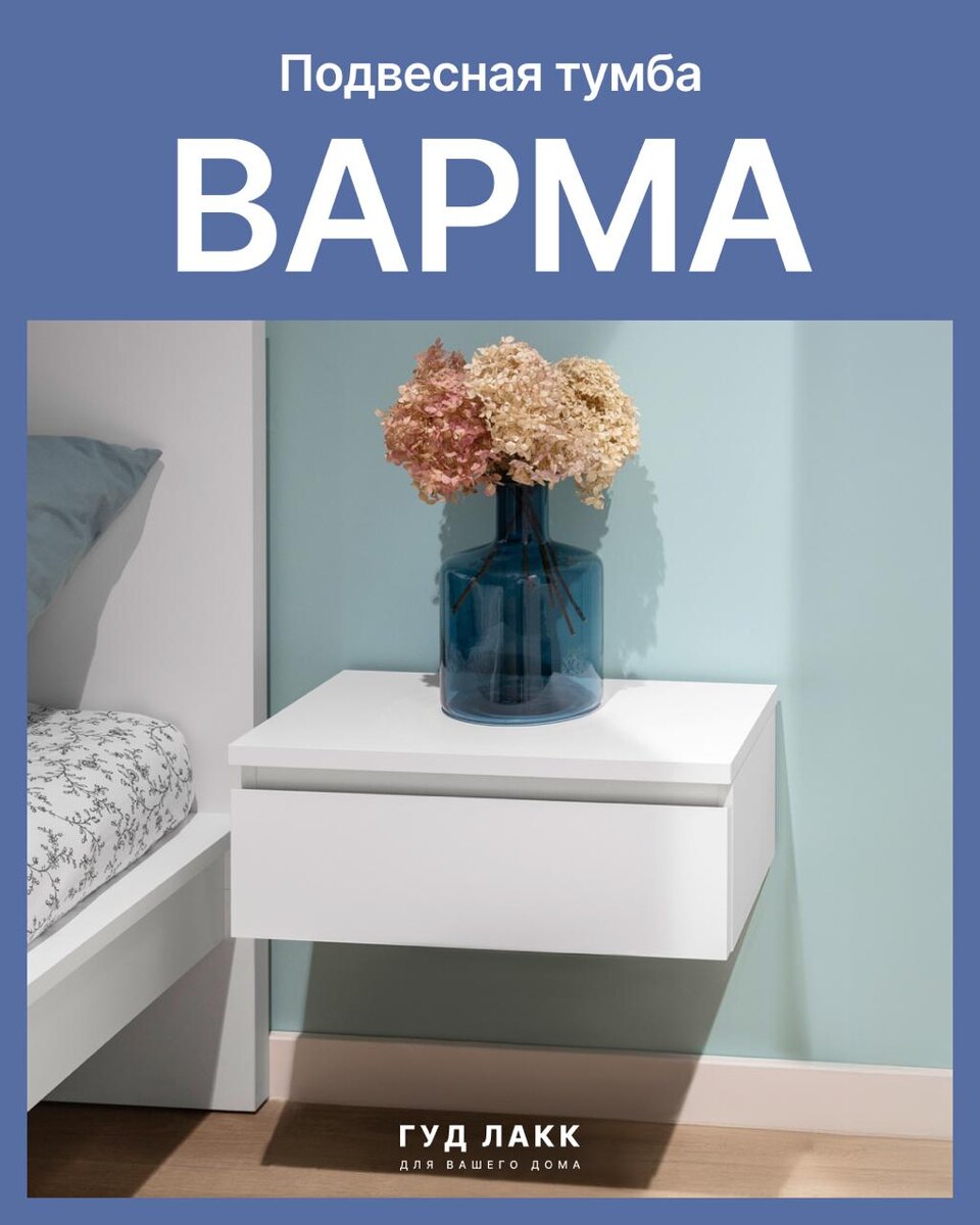 👍👍👍👍👍🛏🛏🛏🛏 А давайте использовать каждый метр квартиры эффективно? Прикроватная подвесная тумба ВАРМА с вместительным выдвижным ящиком — почти как летающая тарелка. Под ней всегда есть свободное пространство. Распологайте на тумбе и внутри ящика всё, что вам необходимо для сна и отдыха. А место под ней — используйте как посчитаете нужным — хоть лежанку для кота ставьте. «Парящие» тумбы облегчат процесс уборки + используемое эмалевое покрытие устойчиво к царапинам, влаге и выгоранию, что делает тумбу долговечной и простой в уходе. Заказать тумбу ВАРМА ⬇️ 😎 OZON ☺️ Яндекс Маркет