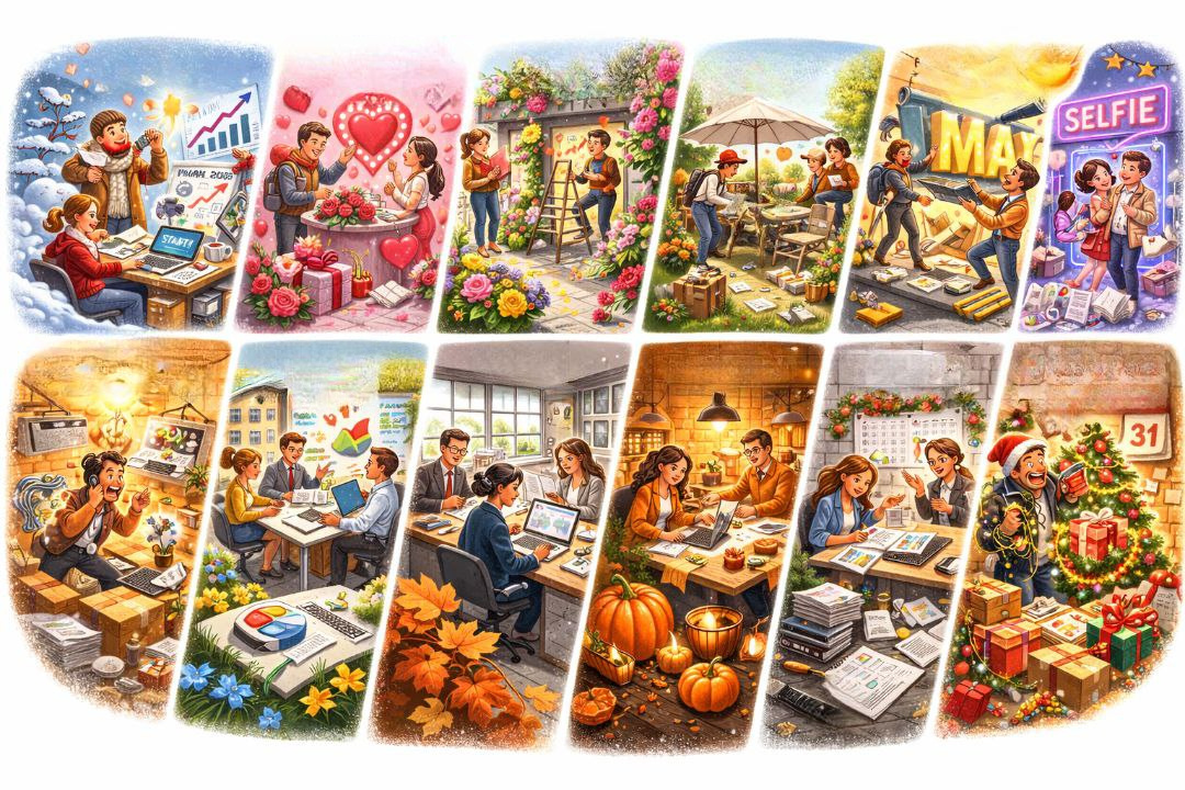 Бизнес в январе и бизнес в декабре — это два разных человека. Один — вдохновлённый стратег. Второй — человек с горящими глазами и словами: «Мы кое-что забыли». В Ва Групп мы проживаем этот сериал каждый год. 12 серий. Без перерыва на рекламу (потому что мы её и делаем). ❄ Январь — перезапуск и большие планы 3 января: «В этом году делаем всё по-новому». 15 января: «Хотим обновить вывеску». 25 января: «А можно чуть бюджетнее?» Январь — про свежесть, аккуратность и желание начать с чистого листа. Энергия есть. Финансы считают. 💘 Февраль — эмоции и дедлайны. «Нужно что-то романтичное. И быстро».