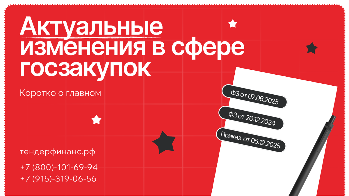 Правила игры в тендерах обновляются постоянно, и одно упущение может стоить победы в закупке или даже внесения в РНП. Команда ТендерФинанс изучила свежие законодательные правки и выделила самое важное. Сохраняйте себе, чтобы быть во всеоружии 👇 Подход к проверке участников стал жестче. Если заказчик найдет несоответствие требованиям или ложные сведения в вашей заявке: • До итогов – заявку отклонят. • После победы, но до подписания – в контракте откажут. 📌 Запомните: вся ответственность за достоверность информации лежит полностью на участнике. 📄 ФЗ от 07.06.2025 № 138‑ФЗ Хорошая новость для тех, кто устал собирать кипы документов. Чтобы подтвердить лицензии или членство в СРО, больше не нужно загружать выписки из реестров. Достаточно указать в декларации на площадке ссылку на соответствующий государственный реестр. 📄 ФЗ от 26.12.2024 № 484‑ФЗ В законе наконец-то поставили точку в спорах о снижении цены более чем на 25%. ❗️ Суть: Требование предоставить обеспечение в полуторном разме