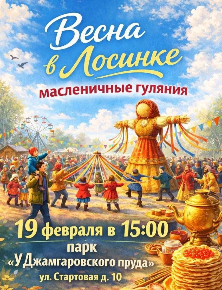 В парке «У Джамгаровского пруда» пройдут праздничные гуляния «Весна в Лосинке». В программе танцы, блины и угощения.