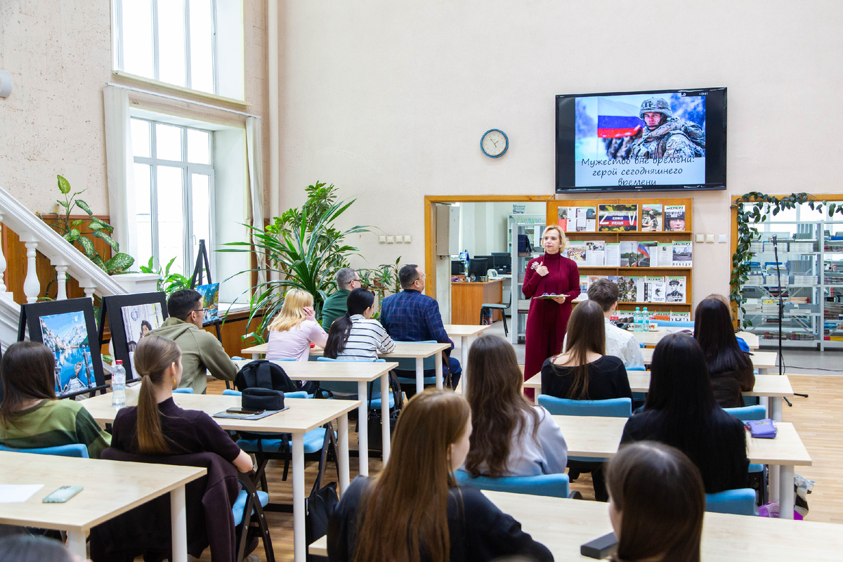 В Информационно-библиотечном центре УрГЭУ состоялся открытый Урок истории на тему: «Мужество вне времени: герои сегодняшнего дня. Связь поколений: от Афганистана к СВО». Мероприятие, организованное совместно с Колледжем УрГЭУ в рамках просветительского проекта «Изучаем историю России», объединило студентов вуза и Колледжа для разговора о патриотизме, долге и преемственности поколений. Ведущая мероприятия, заведующая читальным залом УрГЭУ Юлия Таушканова предложила почётным гостям дать собственное определение мужеству. Своим мнением поделились: Обобщая высказывания, участники пришли к выводу, что мужество не имеет пола и является нравственной силой, позволяющей преодолевать страх. Высшее его проявление — героизм, который стал главной темой диалога. В ходе Урока перед студентами выступил почётный гость — воин-интернационалист, член «Боевого братства» Николай Николаевич Дощанский. Он поделился воспоминаниями об Афганской войне и провел параллели с задачами сегодняшней специальной военно