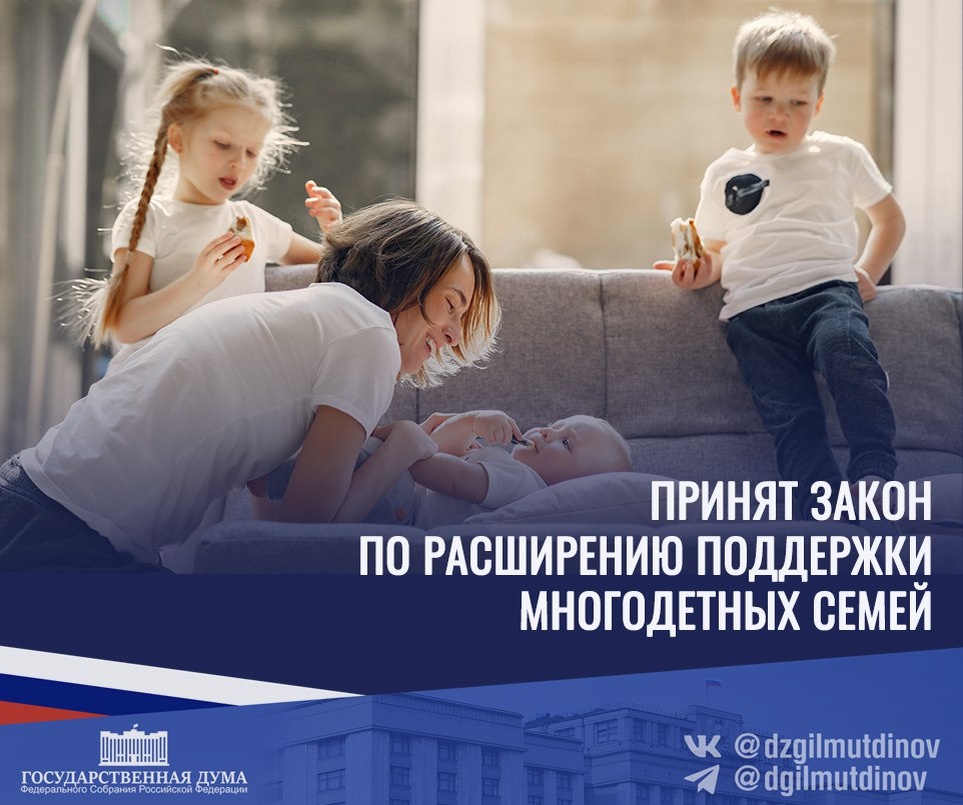 Приняли закон, который позволит дополнительно поддержать многодетных родителей и сохранить для семей с небольшим уровнем доходов право на