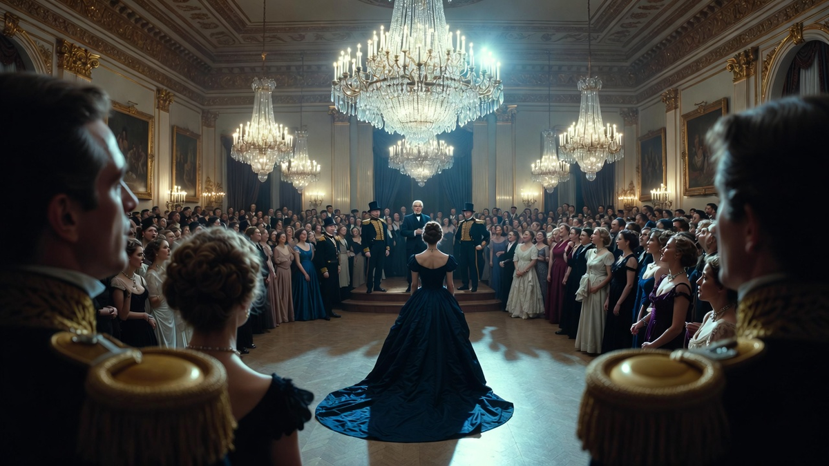 Бал был роскошен. Сверкали люстры, гремела музыка, кружились пары. Ариадна, в тёмно-синем платье, старалась держаться в тени, но её всё равно узнавали, провожали взглядами, шептались за спиной.