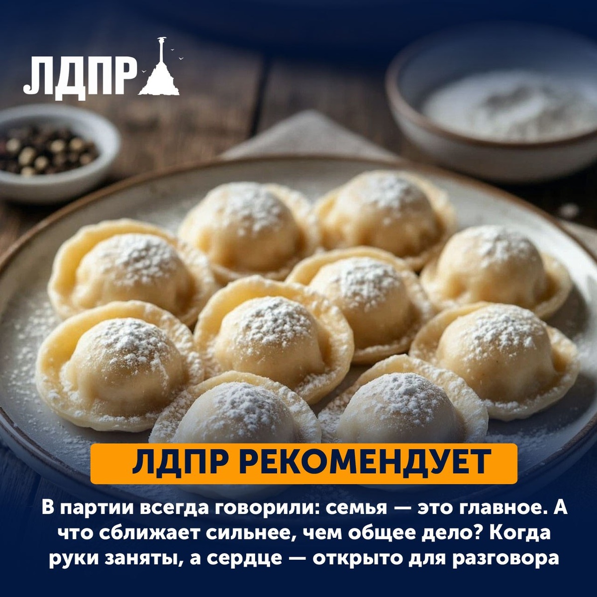 В Севастопольском отделении ЛДПР знают секрет: настоящее семейное счастье складывается из простых вещей. Из тех самых моментов, когда все домочадцы собираются вместе, откладывают телефоны и делают что-то сообща. В партии всегда говорили: семья — это главное. А что сближает сильнее, чем общее дело? Когда руки заняты, а сердце — открыто для разговора. И вот сегодня для этого есть прекрасный повод. День пельменей! Вы только представьте: за окном вечер, на кухне тепло, вся семья в сборе. Стол присыпан мукой, стоит миска с фаршем, и каждый лепит свой неповторимый пельмешек. У папы — богатырские, у мамы — аккуратные, у детей — смешные и кривенькие, но такие родные. День пельменей — удивительный праздник, который придумал сам народ. Он не про кулинарные изыски, а про единство. Потому что нет ничего вкуснее тех пельменей, которые вы лепили всей семьёй, под задорный смех и душевные разговоры.