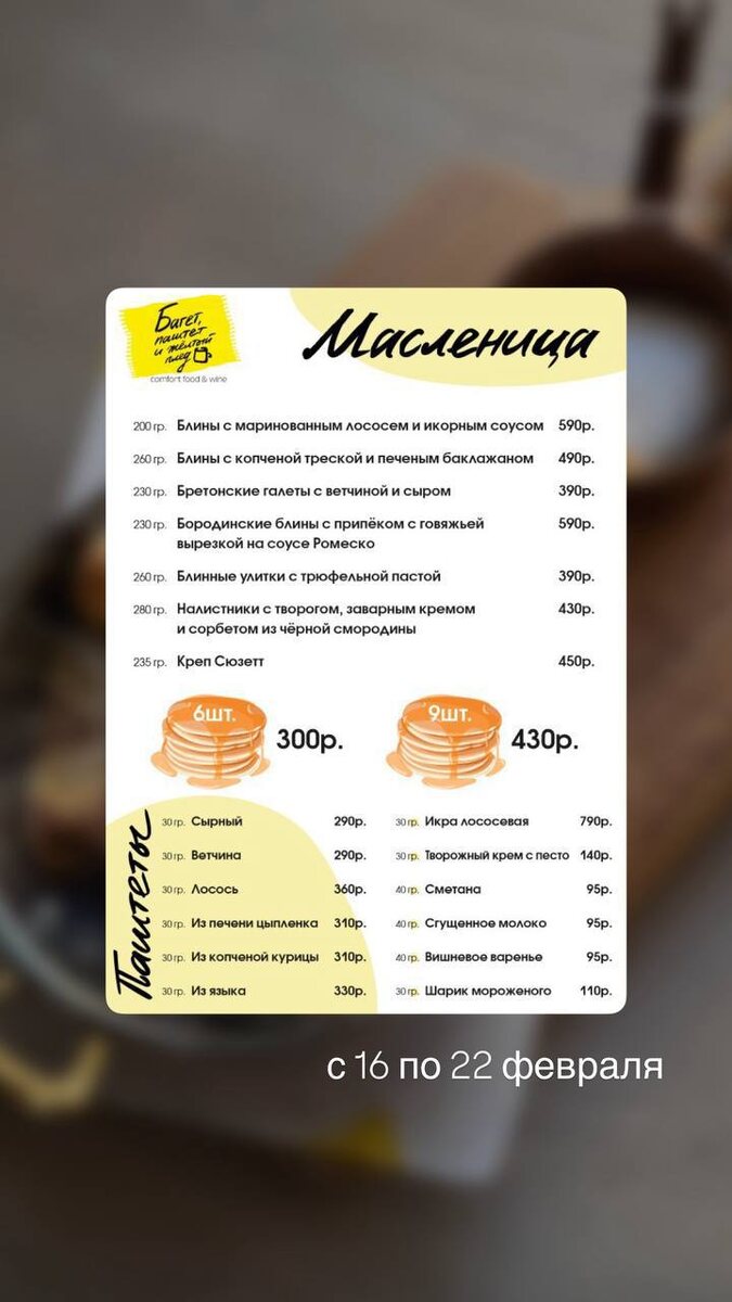 » 🥖🟨 Неделя, когда можно всё: есть блины утром, днём и вечером — и ни капли не жалеть 😌 Это время: — встречаться с друзьями — греться разговорами — устраивать маленькие праздники среди будней — и просто радовать себя 💛 Приходите за своим блинным настроением! Мы уже греем сковородки 😉 📍 Ждём вас с 16 по 22 февраля Ярославль, Собинова 41Б Сохраняйте пост и зовите близких 🥞✨