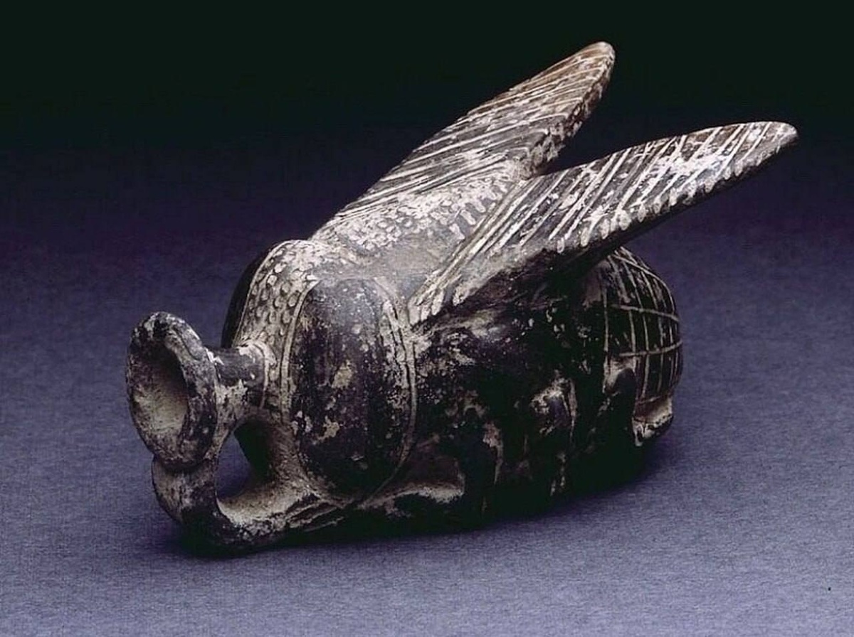 э. Его размер всего около 5 см (высота — 5,4 см, ширина — 5 см). Уникальный дизайн передает реалистичный образ насекомого с большими глазами и парой крыльев, а лапки мухи напоминают человеческие руки. Стиль сосуда относится к керамике Телль-эль-Джахудия, а не к традиционным древнеегипетским формам. В Нильской дельте его часто связывают с присутствием захватчиков-гиксосов. Терра инкогнита | Неизвестная земля