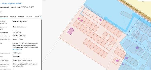 Название: земельный участок, площадью 1000 кв.м., с кадастровым номером 63:27:0104015:265, земли населенных пунктов, расположенный по