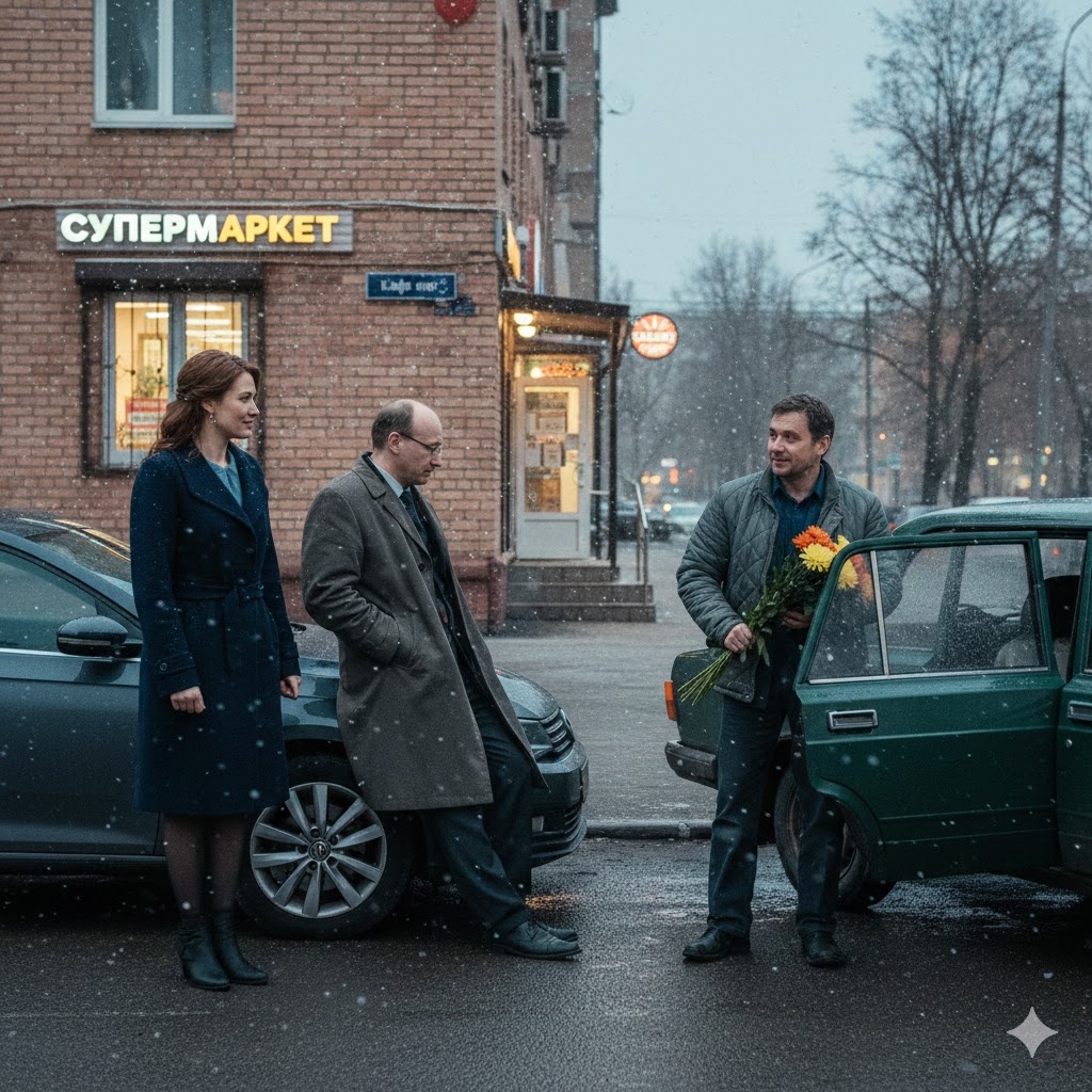 В этот момент к парковке с характерным ворчанием двигателя подкатила старая «Лада» Сергея. Он вышел из машины, увидел Вадима, но не стал лезть в драку или качать права. Он просто подошёл и встал рядом с Катей, слегка коснувшись её плеча.