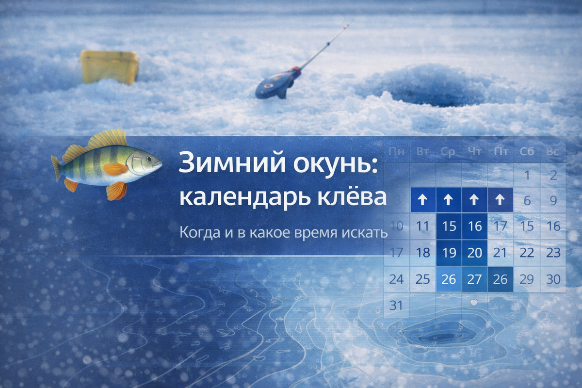 Зимний окунь меняет поведение по сезонам: по перволедью он держится весь день на мели, в глухозимье выходит на глубину в полдень, а по последнему льду снова кормится на мелководье с утра до вечера. Когда ловить рыбу: временные закономерности По перволедью и последнему льду рыба активна в течение всего светового дня. В глухозимье основной клев приходится на период с 9–10 до 14–15 часов, иногда случаются кратковременные выходы рыбы утром и вечером. Наиболее стабильный утренний клёв приходится на сумеречные часы: с рассвета до момента, когда солнце полностью поднимается над горизонтом. Следующая фаза активности часто наступает в середине дня, примерно с 13 до 15 часов. Вечерний клёв начинается за пару часов до сумерек. Важно понимать, что эта схема является обобщенной. Режим питания окуня сильно зависит от конкретного водоема, погодных условий и атмосферного давления. На некоторых озерах рыба клюет исключительно в полдень, на других она клюет только на рассвете. Предсказуем в своем поведе