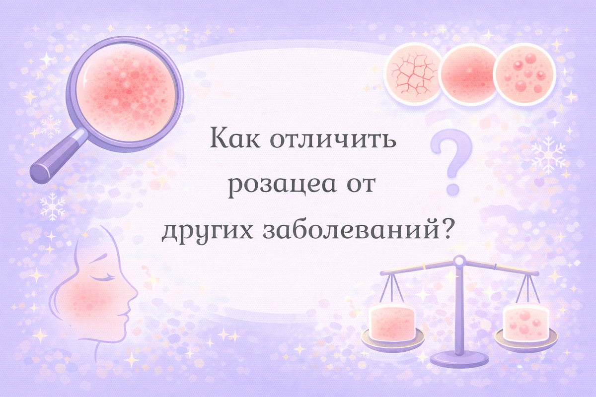 За покраснением лица могут стоять совершенно разные процессы, и пытаться лечить «покраснение вообще» — это всё равно что лечить «боль вообще», не выясняя, болит ли зуб, голова или колено. Внешне розацеа, аллергия и акне могут быть похожи. Краснота есть, воспаление есть, иногда даже высыпания похожи. Но механизмы радикально разные, а значит, и подходы к терапии тоже. Попытка лечить розацеа гормональными мазями или дерматит средствами от акне — прямой путь к усугублению. Поэтому первый вопрос — не «чем мазать», а «что это вообще такое». Давайте разбираться! Но не забываем, что точно ответить на этот вопрос может только врач дерматолог. Розацеа — это хроническое нарушение сосудистой регуляции с воспалительным компонентом. Сосуды расширяются избыточно и не возвращаются в норму. Отсюда и стойкая эритема, телеангиэктазии (сосудистая сеточка), иногда папулы и пустулы. Где: центральная часть лица — щёки, нос, лоб, подбородок. Симметрично. Когда обостряется: после триггеров — горячее, холод, ал