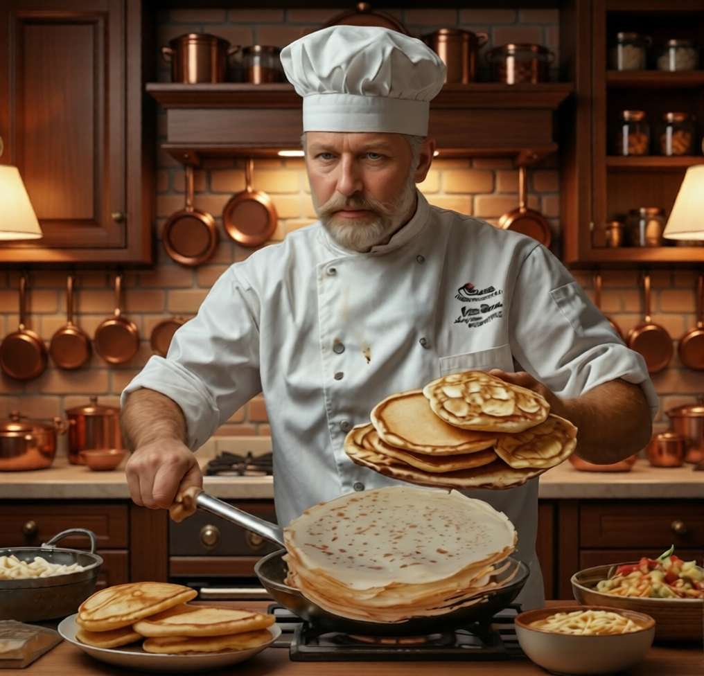 ИИ портрет Чайковского, пекущего блины, в телеграмм-канале его пра-пра-правнучатого племянника Дениса фон Мекк, натолкнуло меня на этот пост. Он тем более актуален в связи с началом масленичной или пестрой недели перед Масленицей. А "Февраль" - моя любимая пьеса из "Времен года" Петра Ильича. Как раз в 2026 году исполняется 150 лет, как этот цикл был сочинен и издан. Интересно, как вы себе представляете работу композитора? Его во сне посещает мелодия, и он посередине ночи вскакивает, чтобы ее записать? Или каждое утро -как на работу- идет к рабочему столу и с 9 до 12 совершает "запланированный подвиг", исписывая определенное количество листов нотной бумаги? Или, услышав наигрыш на самодельной флейте - как это было во времена Моцарта - преобразует его в ноты, добавляет красивый музыкальный орнамент в виде аккордов, арпеджио и пассажей, и пьеса готова? Ведь существует мнение, что Вольфганг Амадей был скорее искусным компилятором, чем композитором. То есть тем, кто удачно сочетал в