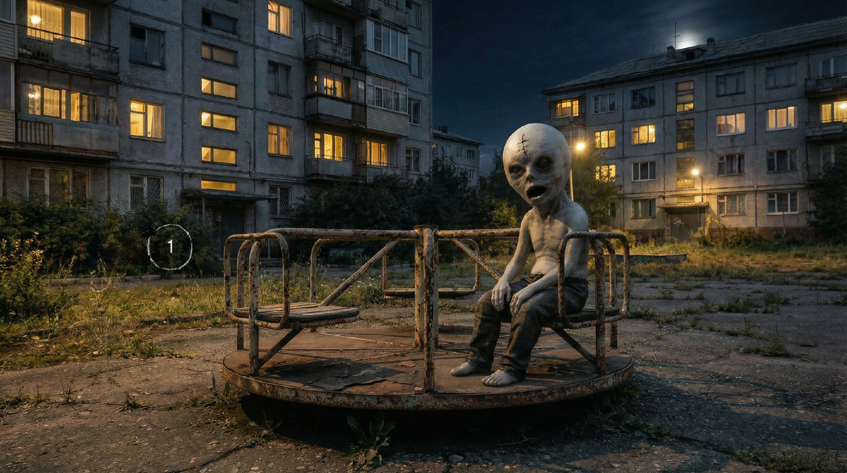Жёлтую карусель снова было видно через окно кухни. В этот раз она была не пуста. На ней катался не ребёнок, да и не взрослый, а что-то страшное и нелепое.