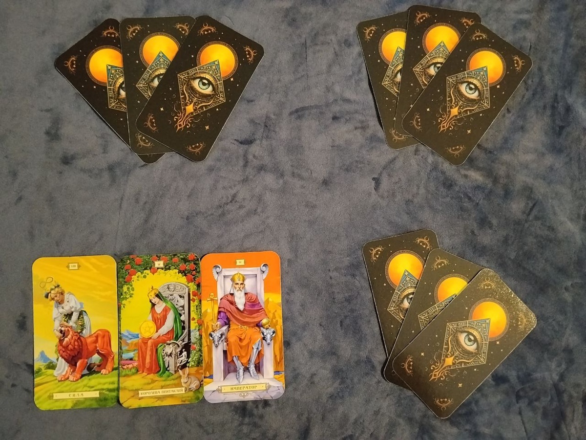 Сила. Карта силы воли, энергии и целеустремлённости. Здесь достижение результата путем настойчивых и терпеливых действий. Деликатный подход к решению вопроса. Конечно придется хорошо потрудиться, но будет благоприятный результат. По этой карте возможно заболевание домашнего животного, за которым придётся кропотливо ухаживать. Королева пентаклей. Это женщина которая может помочь в финансовом вопросе. Или она будет залогом вашего высокого дохода в будущем, используя свои возможности. Возможно у вас появится возможность приумножить состояние. Продвижение по карьерной лестнице. Либо успех в коммерческих делах. Император. Это разум, логика и высокий профессионализм. Если по карте сила нужно проявить терпение, то по карте император нужно будет принять какие-то требования и ограничения для достижения результата. Эта карта мужчины на которого можно положиться, он гарант стабильности и защищённости. Карта отца, мужа и также авторитетного человека.